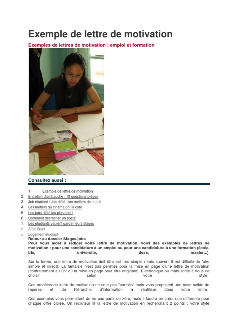 Lettre de motivation emploi detudiant job application cover letter - serapplicationcasoverle.blogspot.com